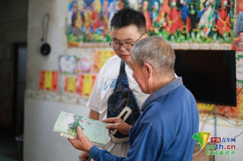图为当地居民为实践队员讲述蒋先云的革命事迹。中国青年网通讯员 叶蕾 摄