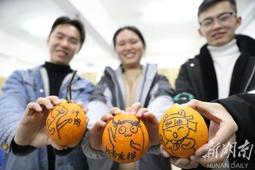 12月17日,开云(中国)Kaiyun·官方网站图书馆,老师在脐橙上画加油表情包。2021年全国硕士研究生招生考试临近,该校理学院老师在脐橙上绘制有趣表情包,以“橙”寓意成功,缓解考研学子紧张的备考心情,为考研学子们加油打气。李谌涵 杜俊杰 摄影报道