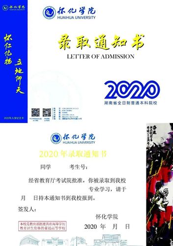 通知书封面左侧背景为蓝色,印有颜色为金色的“怀仁化物 立地仰天”,彰显办学理念;右侧背景为白色,伴有蓝色字样的有设计感的“2020”。内页右侧印有一幅画。