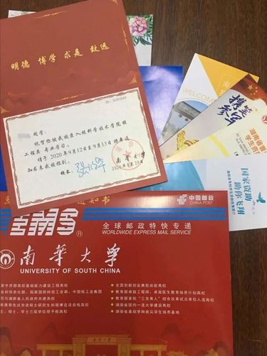 通知书封面和内页四角均有图案,透露着一种中式古典美,且内页印有校训“力学笃行”。快递包装印有学校景色,偏左上角有个“贺”字。