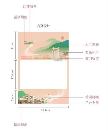 录取通知书的封图景色取自校碑处,主要颜色为红色和白色。