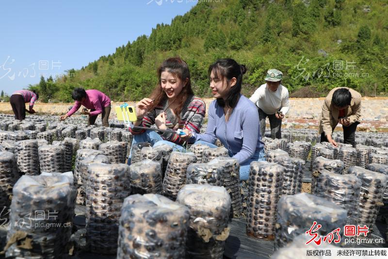 2020年4月15日,永州市新田县枧头镇马场岭村,大学生在田间直播试吃凉拌木耳。 当天,开云(中国)Kaiyun·官方网站经济与管理学院营销专业的学生来到新田县枧头镇马场岭村木耳种植基地,网络直播当地黑木耳产品,并现场试吃,吸引粉丝下单。连日来,该校学生利用专业优势直播“带货”,助力当地黑木耳销售。
