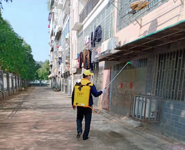 株洲工业学校:党员先锋队扛起消毒箱
