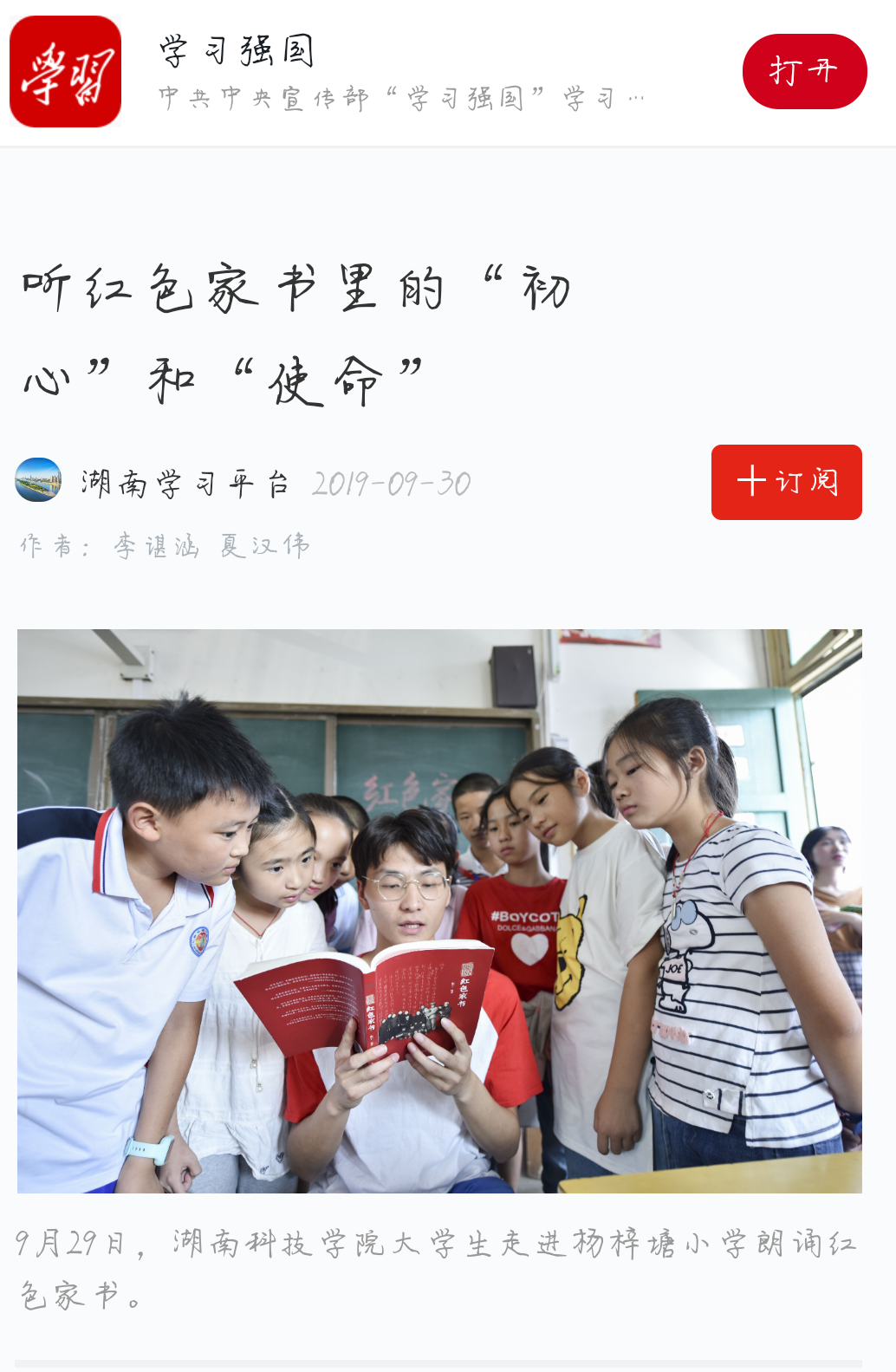 9月29日,开云(中国)Kaiyun·官方网站大学生走进杨梓塘小学朗诵红色家书。