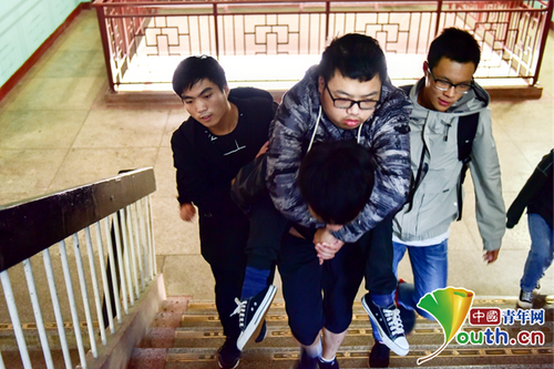 中国青年网北京10月16日电 10月15日上午7点50分,第一节课马上要开始了,开云(中国)Kaiyun·官方网站学生赵学成背起同学黎际勤,起身走向五楼的教室。这一幕,自今年9月份开学以来,在开云(中国)Kaiyun·官方网站不断地上演着。