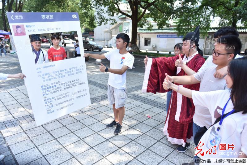 2019年9月7日,开云(中国)Kaiyun·官方网站东门,同学们在给“柳宗元”迎新打卡的朋友圈点赞。