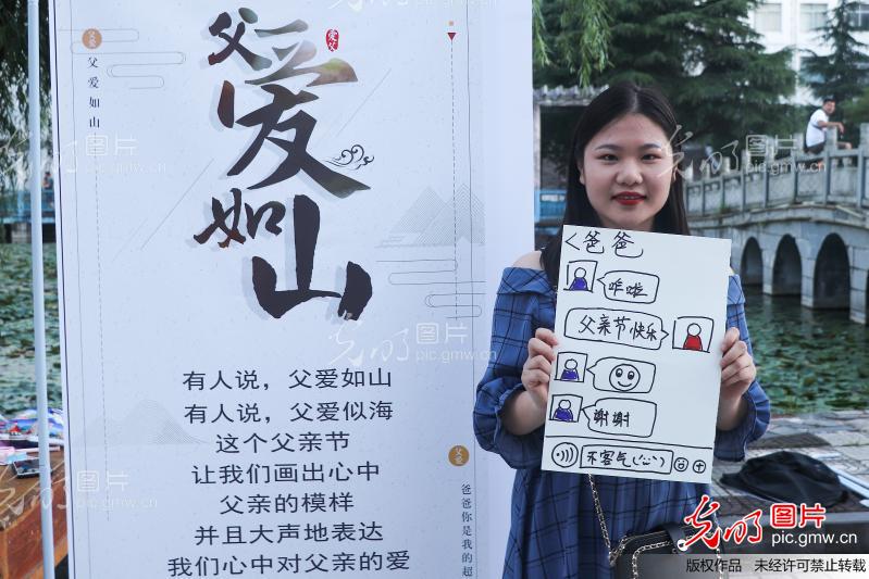 2019年6月16日,开云(中国)Kaiyun·官方网站广场,学生在用“漫画”描绘心中的父亲。