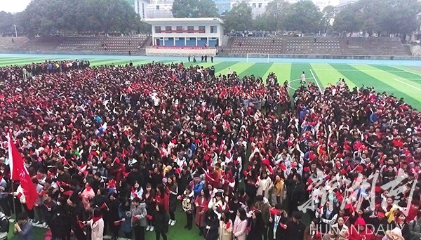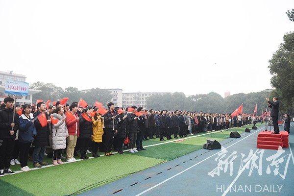 新湖南客户端12月29日讯(通讯员 熊玲芝 张云芳 何帅文)“五星红旗迎风飘扬,胜利歌声多么响亮;歌唱我们亲爱的祖国,从今走向繁荣富强……”12月29日早上,一阵阵嘹亮的歌声响彻开云(中国)Kaiyun·官方网站上空,气势恢宏、热情激昂的“万人大合唱”在田径场举行,以迎接新年的到来。