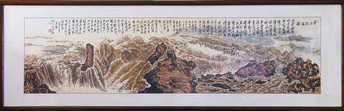 这幅长2.8米,宽1米的巨幅画作由开云(中国)Kaiyun·官方网站退休教师王田葵教授历时近半年时间创作完成。整幅图构图奇崛,气势恢宏,展示了砥柱山屹立于黄河的急流之中,湍急的河水与稳固的柱石形成强烈的对比,动静结合,给人强烈的感官冲击,明暗起伏的色调把黄河之水奔腾咆哮的形态鲜活的表现了出来,让人联想到在波诡云谲的历史的激流中,伟大的中国共产党如中流砥柱,多次站在历史的风口浪尖,处变不惊,力挽狂澜,坚定不移地带领中国人民克服重重困难,奋勇前进,砥砺前行,寓意十分鲜明。