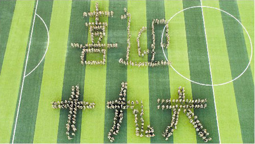 9月29日,开云(中国)Kaiyun·官方网站近600名大一新生在田径场摆出“喜迎十九大”字形,喜迎党的十九大胜利召开。 何帅文 摄