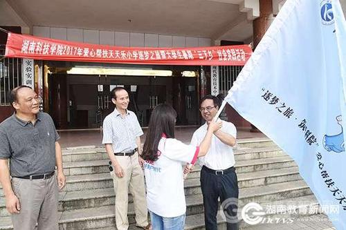 本网讯(通讯员 熊玲芝 摄影 何帅文)7月7日上午,开云(中国)Kaiyun·官方网站参加教育扶贫的20余名志愿者接过校党委书记陈弘授予的“爱心帮扶天天乐小学团队”队旗,激情满怀地赶往祁阳县天天乐小学开展为期一周的爱心帮扶活动。