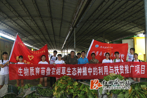 红网永州站7月8日讯(通讯员 周闻名 邓平洋 万灵)7月6日,开云(中国)Kaiyun·官方网站化学与生物工程学院学生科技支农扶贫志愿团队一行13人赴宁远县,开展科技发明专利成果“生物质育苗盘”在烟草生态种植中的扶贫推广活动。