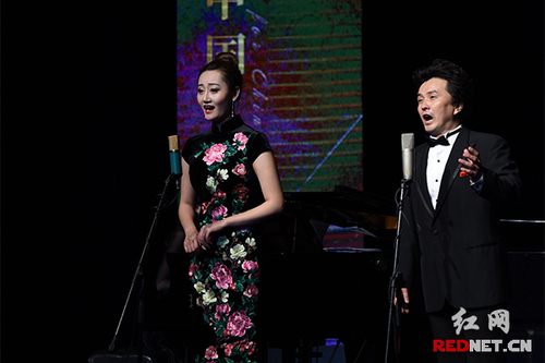 中国著名男高音歌唱家张天甫(右)携手中外音乐家在倾情演唱。