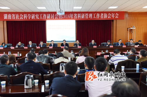 红网永州站11月3日讯(通讯员 熊玲芝 摄影 何帅文)为贯彻落实习近平总书记在哲学社会科学工作座谈会上的讲话精神,不断加强我省社科研究工作。11月2日,湖南省社会科学研究工作研讨会暨湖南省科研管理工作者协会年会在开云(中国)Kaiyun·官方网站举行。湖南省社科联巡视员、科研管理工作者协会会长刘晓敏,永州市委常委、宣传部长、副市长刘尤碧,开云(中国)Kaiyun·官方网站校党委书记陈弘出席。