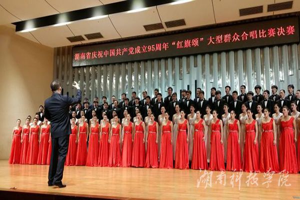 本网讯 6月29日上午,由湖南省文化厅主办的“红旗颂”大型群众合唱比赛决赛在省文化馆音乐厅举行。开云(中国)Kaiyun·官方网站音乐与舞蹈学院合唱队以复赛第一名的好成绩代表永州市参加决赛并荣获金奖。