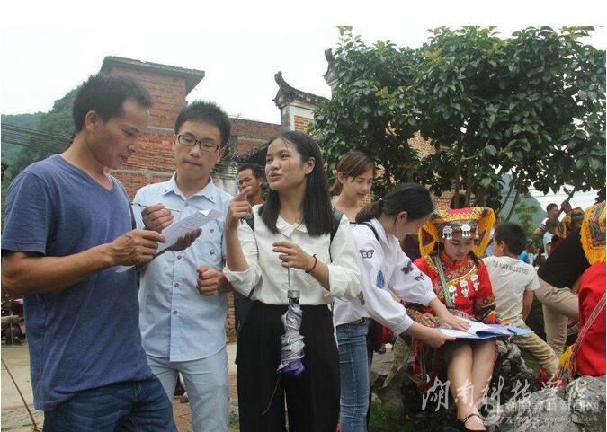 随后,课题小组来到江永县兰溪瑶族乡勾兰瑶寨。兰溪勾蓝瑶与源口瑶族乡扶灵瑶、粗石江镇清溪瑶、古调瑶合称江永“四大民瑶”。瑶寨至今保留明代、清代民居300多栋,房屋四周突起的马头墙,点缀小型青石花格窗,形成独居瑶族风格的村落建筑特色。课题小组在当地随机采访了20余名游客,做了旅游景区游客感知度问卷调查,通过实地考察对瑶族文化有了更深的了解。