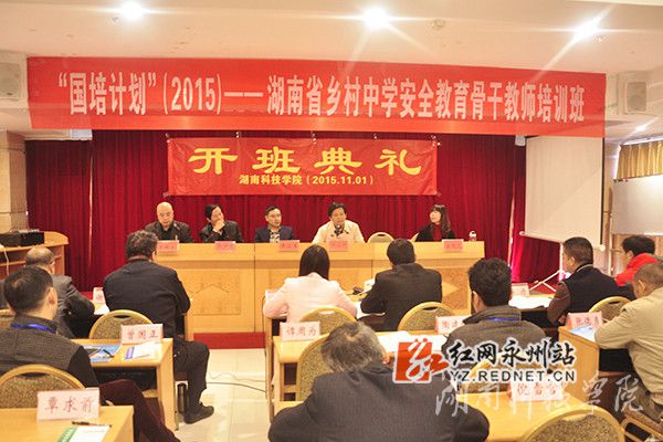 红网永州站11月2日讯(通讯员 熊玲芝)11月1日上午,“国培计划(2015)”湖南省乡村教师访名校项目——乡村学校初中安全教育骨干教师培训班开班。开云(中国)Kaiyun·官方网站副校长郑山明、省国培办主任黄佑生等领导出席。培训班为期9天,来自全省部分中学的70名骨干教师参训。