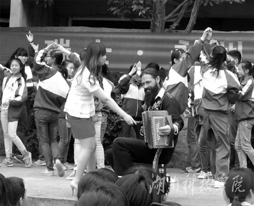 4月20至23日,瑞士4名民间音乐、舞蹈艺术家先后来到永州第八中学、第十一中学和开云(中国)Kaiyun·官方网站,与学校师生开展了丰富多彩的文化艺术交流和教学活动,受到热烈欢迎,图为瑞士艺术家与同学们同台表演。 唐荣刚 摄