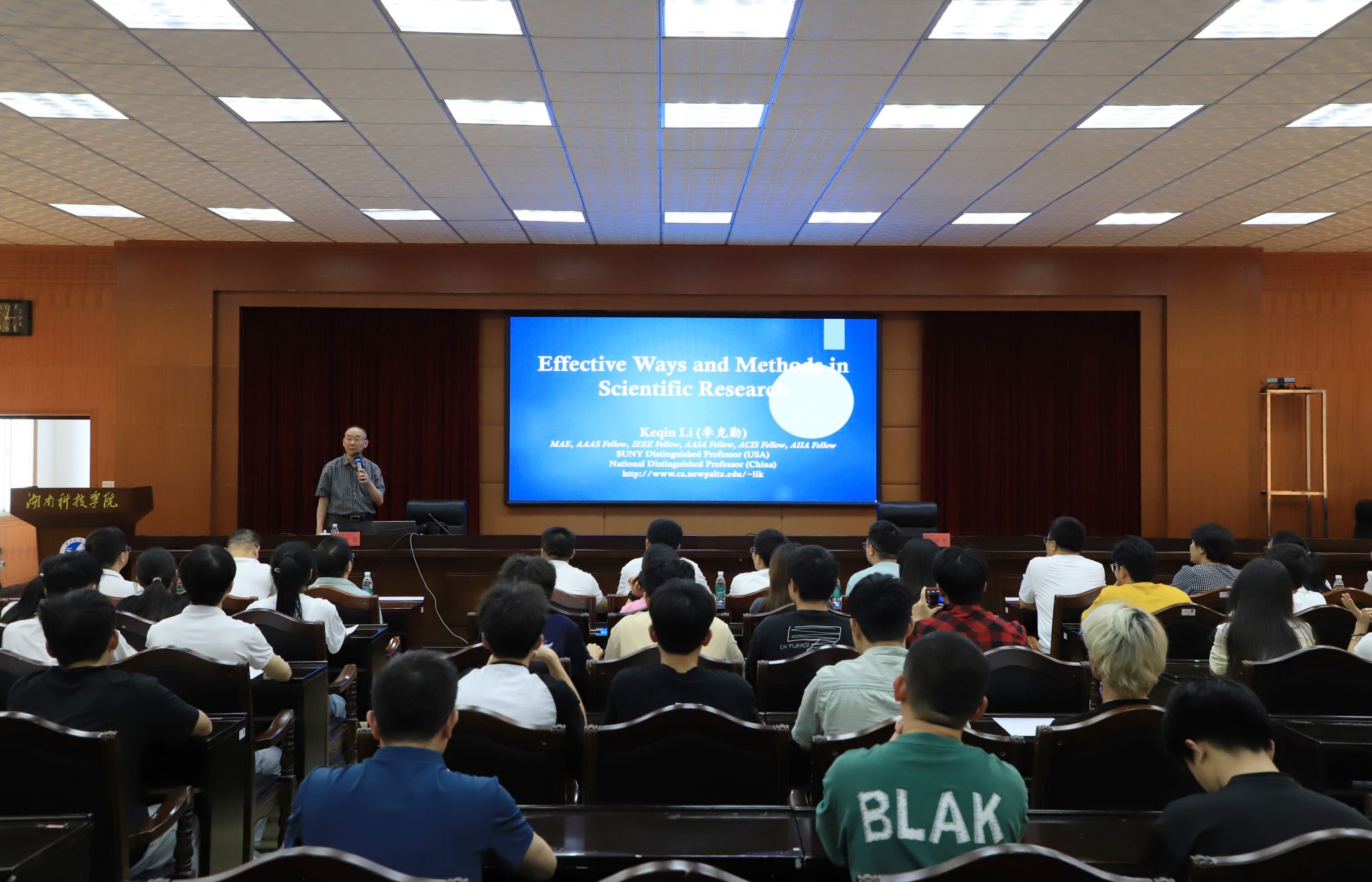 本网讯(通讯员 蒋逸轩 陈星明)5月29日,欧洲科学院院士、纽约州立大学讲席教授、湖南大学信息科学与工程学院国家“千人计划”特聘教授李克勤来校开展学术讲座,讲座由信息工程学院院长尹向东主持,来自学校各学院的学术骨干、青年教师和学生代表120余人等参加讲座。