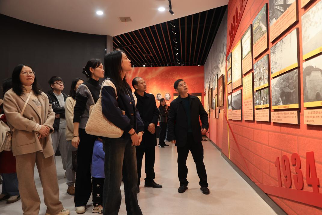 党员同志们来到红六军团指挥部旧址陈列馆,展馆内的水壶、马灯等一件件老物品将大家带回了那个艰苦奋斗的革命岁月。在红色文化教育展馆,党员同志们在讲解员的解说下重温了长征故事,聆听了半截筷子的故事,深刻感受了“军爱民,民拥军”的鱼水情。