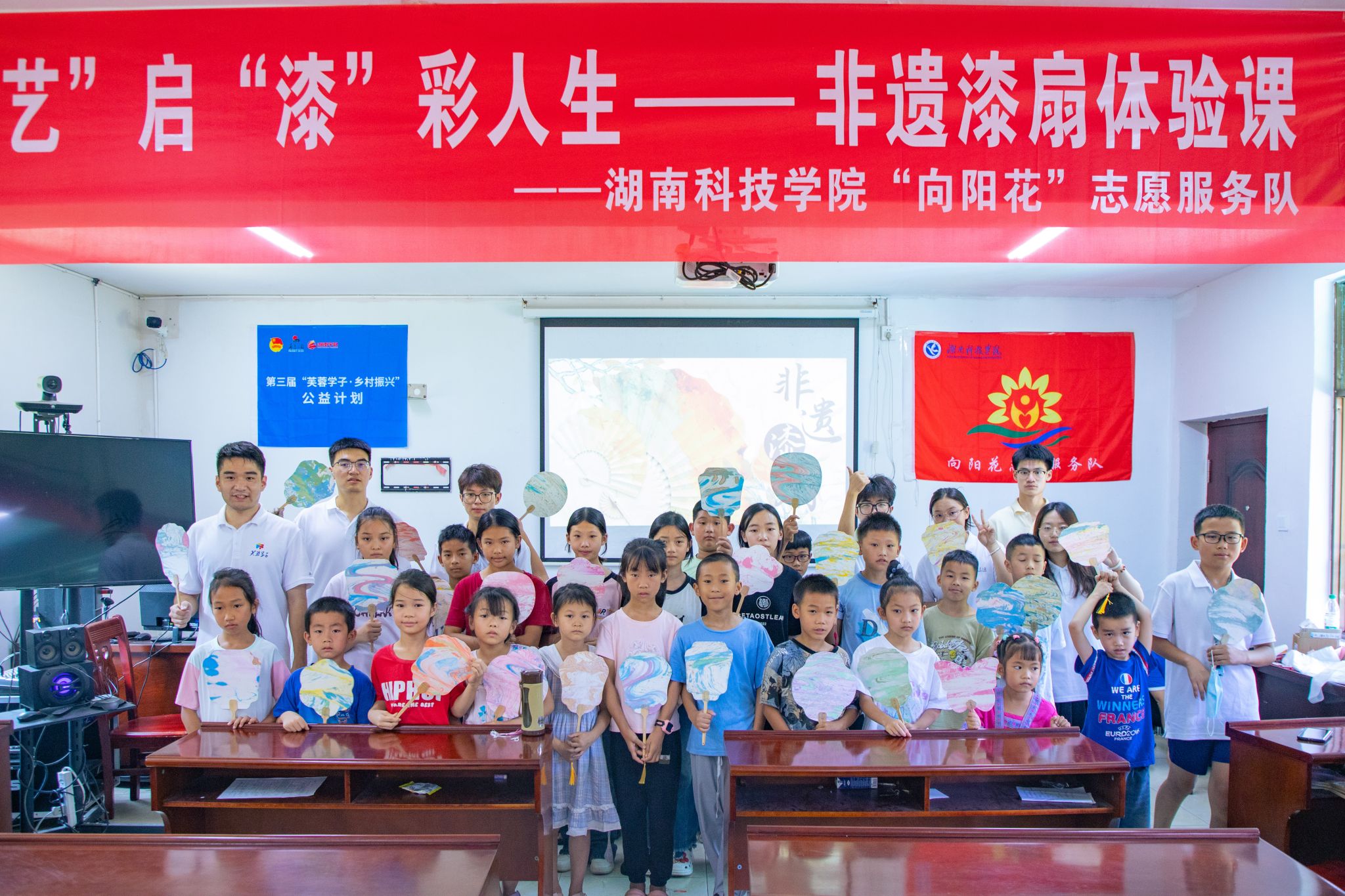 墨韵浸润廉意,共创漆彩人生。大学生们还为侗乡青少年组织了一场书法学习活动、漆扇制作体验活动和普通话系列推广活动等,让青少年们在绘画中认识文字、了解文化,深刻认识到中华文明的魅力,在制作漆扇中感受非遗文化之美、艺术创作之乐,不断激发他们对中华优秀传统文化的兴趣与爱好。