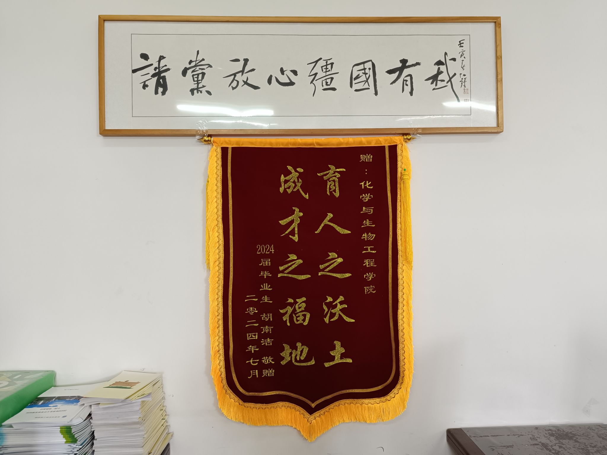 本网讯(通讯员 张自强)“育人之沃土,成才之福地。”近日,化学与生物工程学院收到2024届毕业生胡南洁赠送的锦旗。