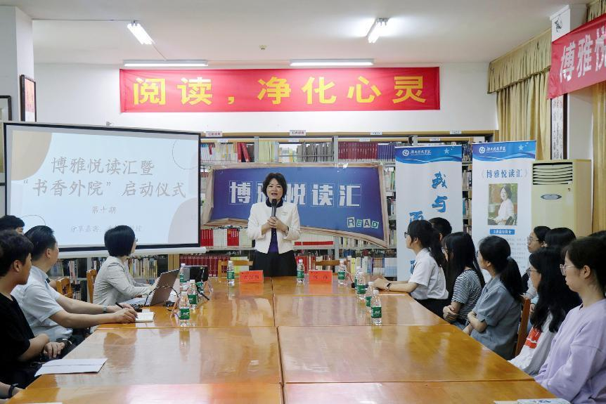 本网讯 (通讯员 旷湘怡 金雪荣)5月6日,外国语学院在图书馆104综合阅览室举行博雅阅读汇暨“书香外院”启动仪式,邀请党的二十大代表、英语专业1995届校友、中南林业科技大学心理健康教育研究中心主任袁红梅教授作为主讲嘉宾。党委委员、副校长何海出席仪式,相关部门职能负责人以及外国语学院40名同学参加仪式。