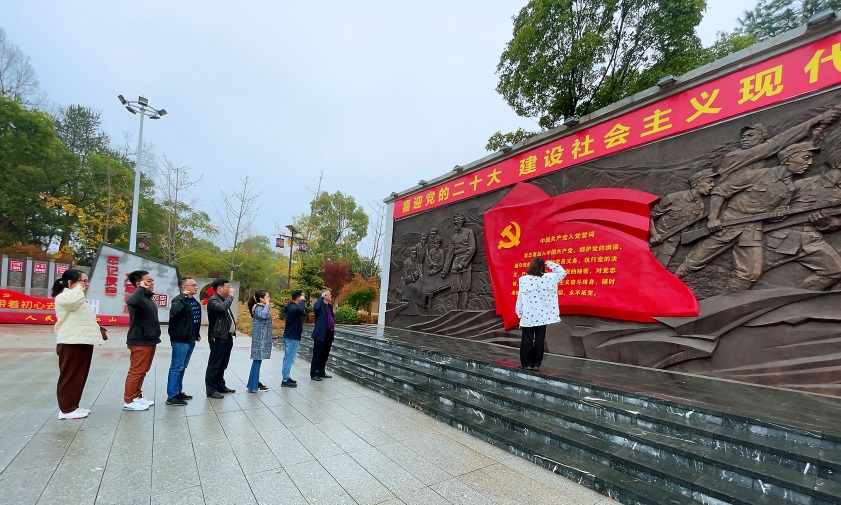 本网讯 10月30日,机关第六党支部组织党员同志前往永州市零陵区画眉山村红六军团指挥部旧址开展“贯彻党的二十大精神 奋进新征程”主题党日活动。