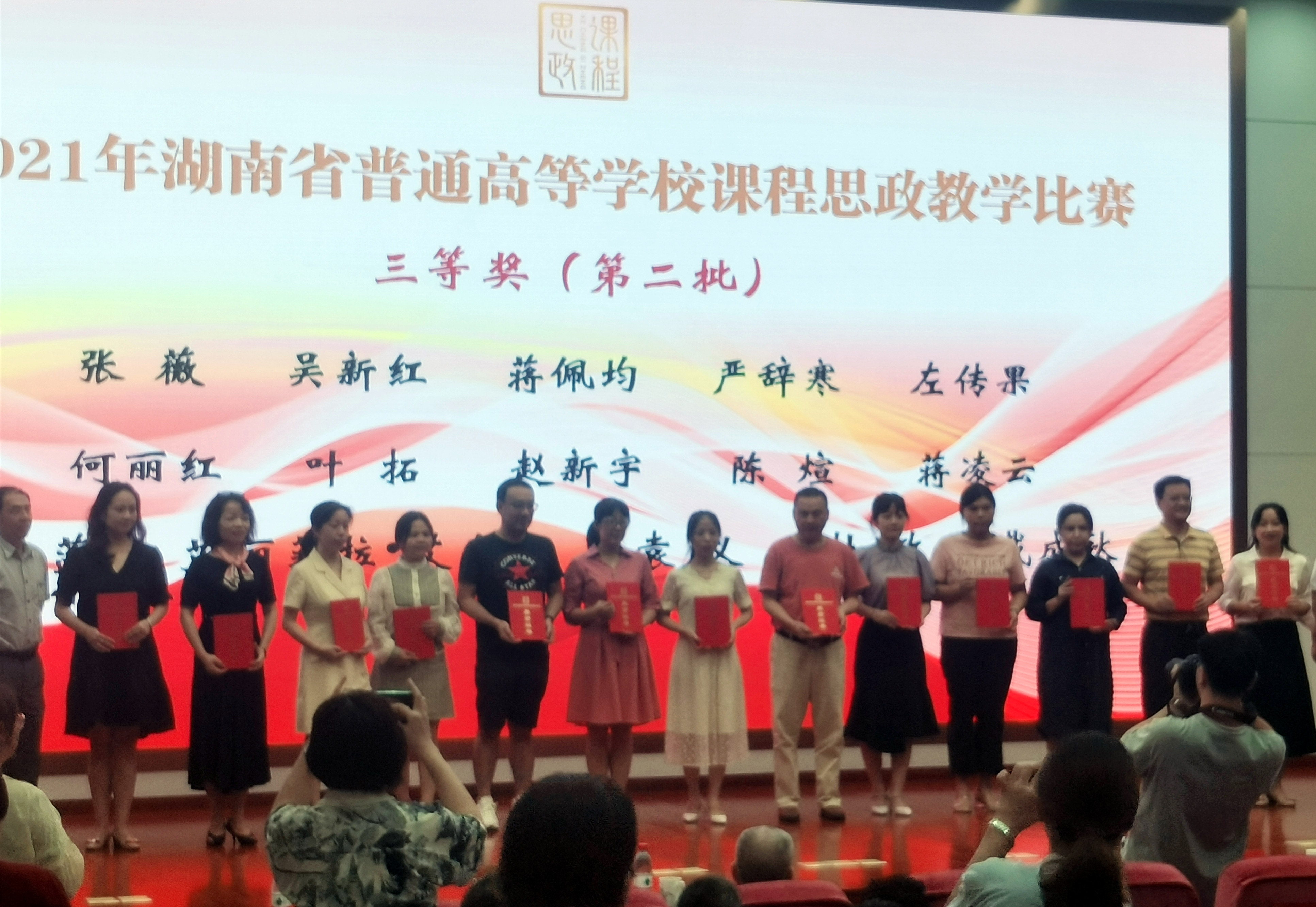 据悉,本次比赛由湖南省教育厅主办,比赛共历时半年,首次开启理工(医学)类、文科类、外语类全学科赛道。全省共52所高校301件参赛作品入围复赛,最终有122个教学团队(个人)进入决赛。决赛共邀请了省内外40位专家担任评委。决赛共评选出一等奖18名、二等奖42名、三等奖62名、优秀组织奖13名。