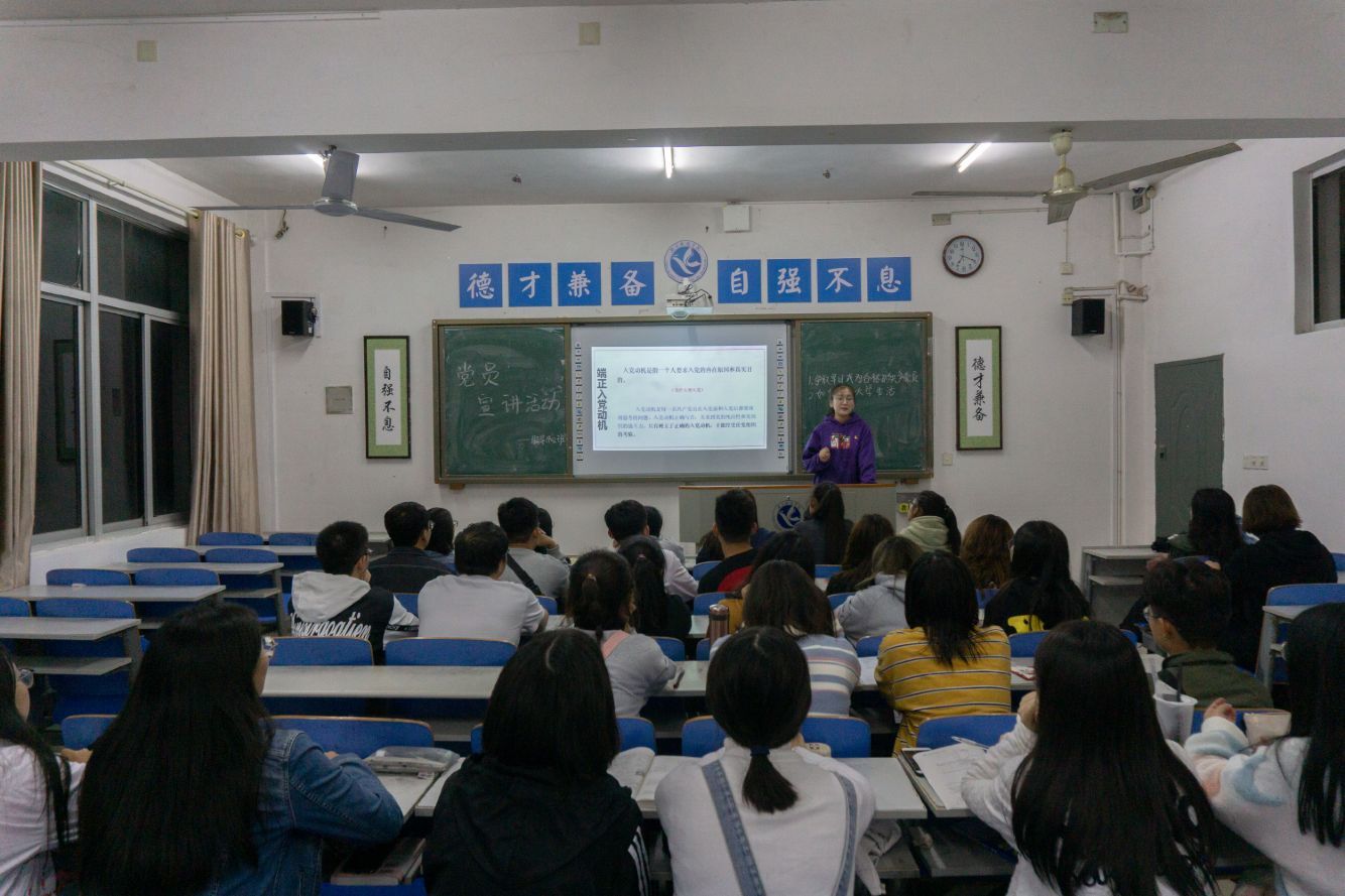 本网讯 10月16日晚,传媒学院40余名学生党员深入大一新生班级开展“我是党员听我说”大学生活导航主题教育活动。