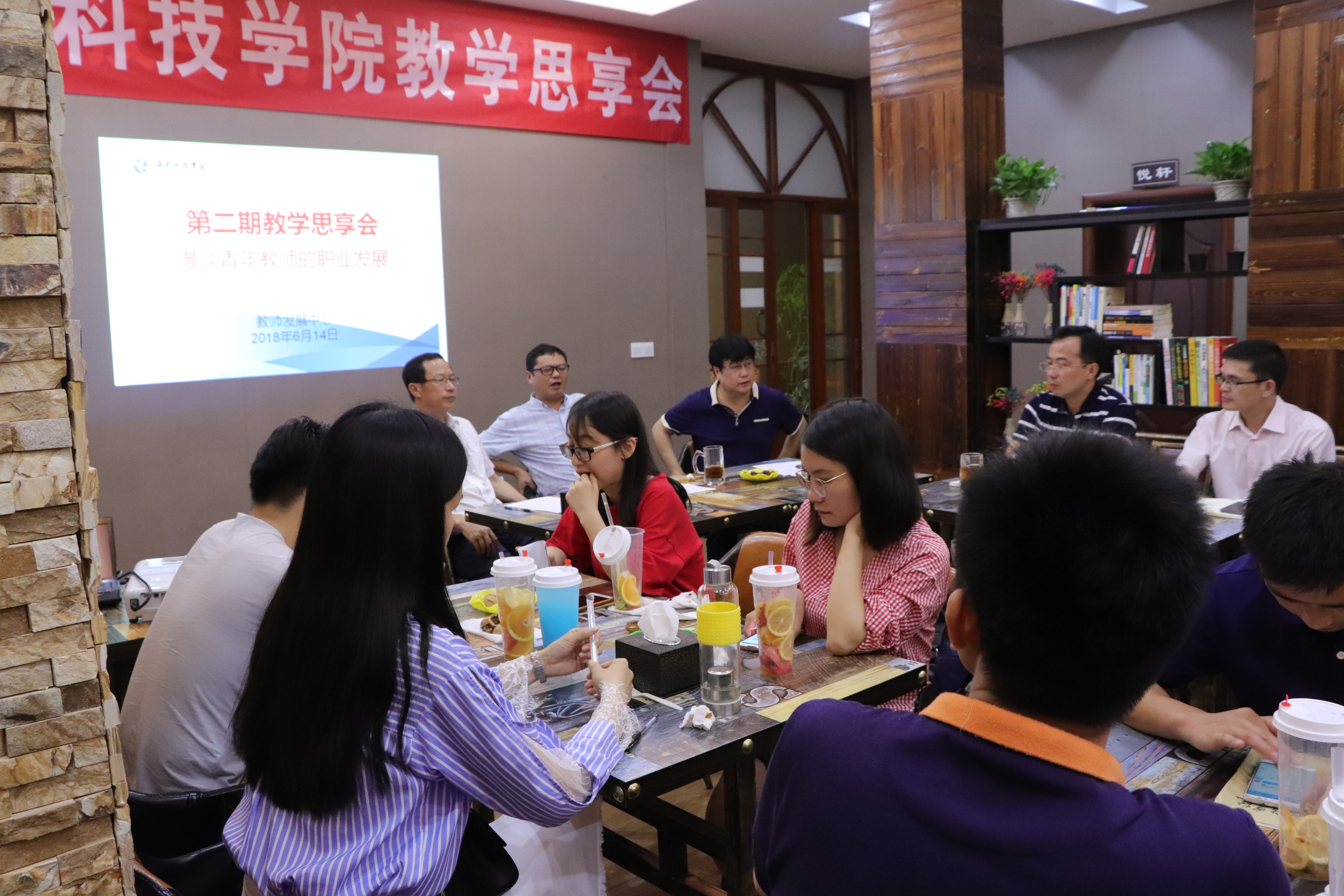 本网讯 为了让新进教师能积极规划、主动发展,快速进入教师职业发展成长期,6月14日晚,学校在教师发展中心举行“漫谈青年教师的职业发展”主题教学思享会,教务处处长石循忠、科技处处长杨金砖、人事处副处长杨攀和2017年新进专业教师30余人参加。活动由教师发展中心主任杨再喜主持。