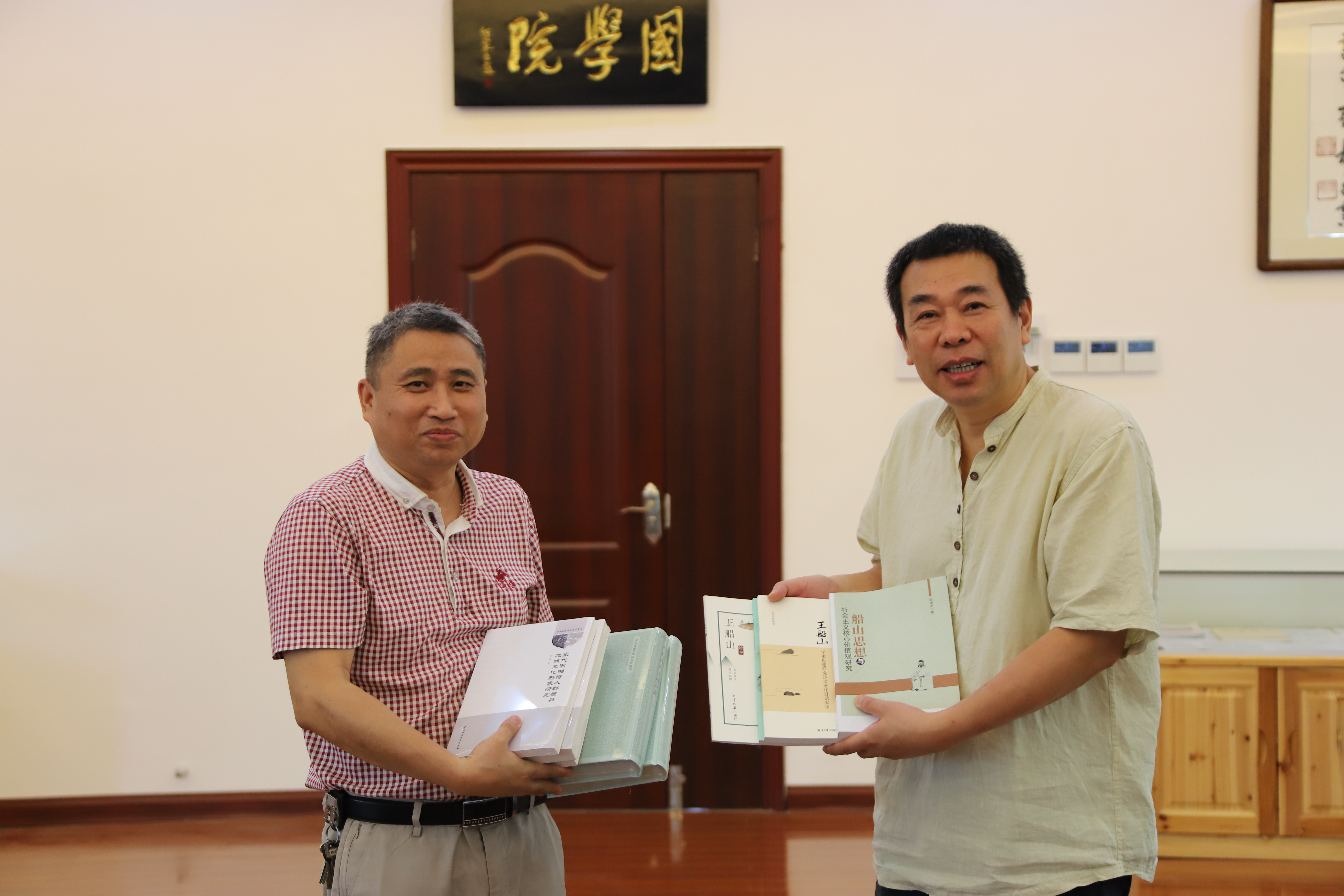 座谈会在国学院小成堂举行。座谈中,两地国学院互赠了最新出版的学术著作。国学院主编的《开云(中国)Kaiyun·官方网站国学院丛刊》已出版《晚周诸子学研究》、《宋代湖湘诗人群体与地域文化形象研究》二种,另出版有国家古籍整理出版专项经费资助项目成果《新元史》(10册)、《湖南朝阳岩石刻考释》二种。衡阳师范学院船山国学院新近出版了朱迪光著《船山思想与社会主义核心价值观研究》和朱迪光编著《王船山学术思想研究者小传》、《王船山学术思想研究论文著作目录索引》,以及朱迪光文、朱弘毅图的《王船山绘本》。