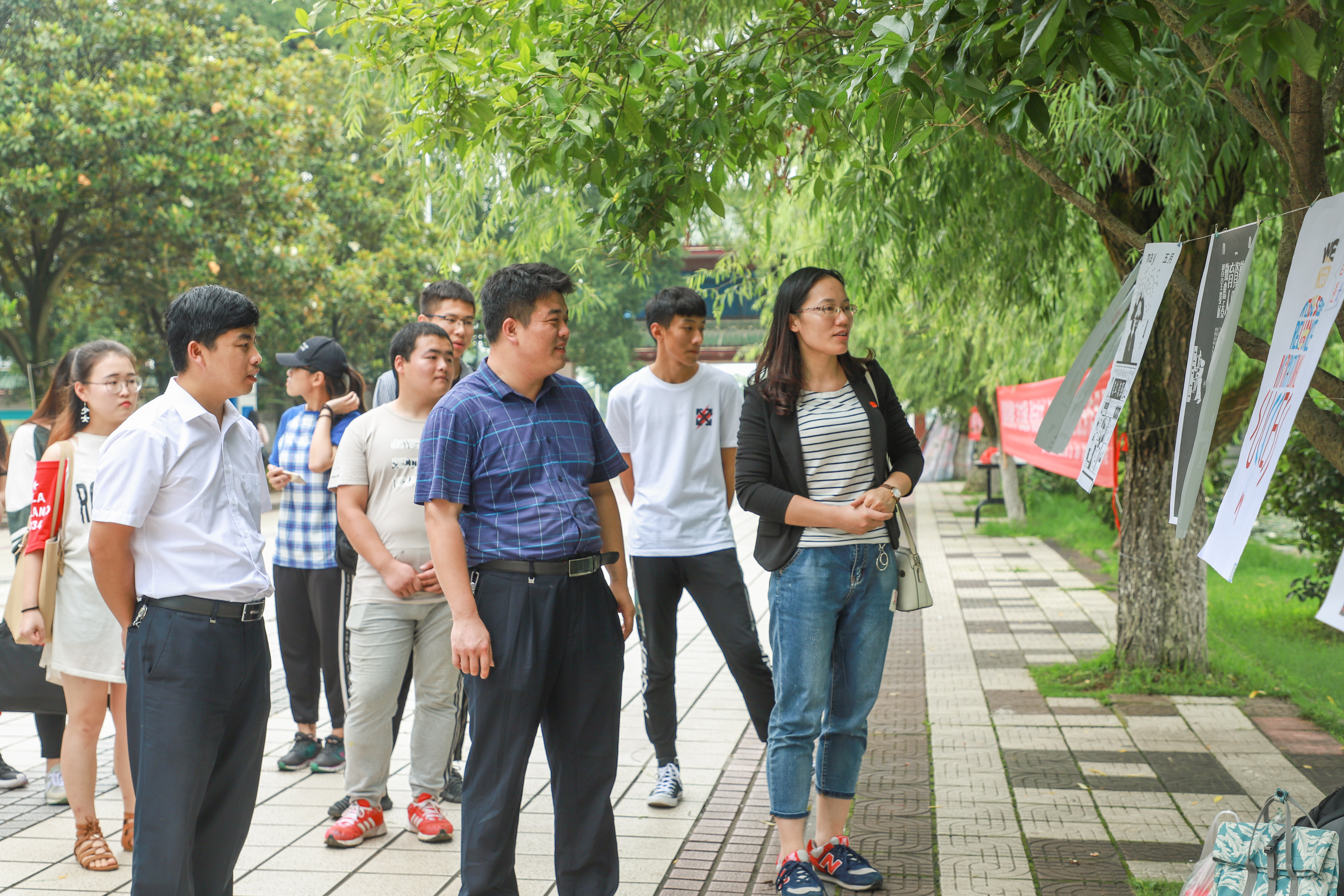 本网讯   6月5日,“自立自强,励志成才”海报设计大赛优秀作品展在爱莲湖畔拉开了序幕,展览吸引了广大师生前来观展。