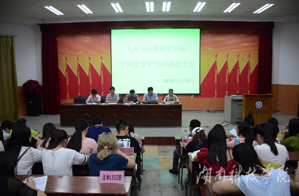 本网讯(通讯员 王佩莹)5月6日下午,人文与社会科学学院在明德楼报告厅召开“学风建设年”活动推进大会。会议提出了要培养一批“乐学、勤学、会学”优秀学生的总体目标,围绕这一总体目标,开展系列促学活动。各班班主任、班长、学习委员、团支书、寝室长等参加会议。
