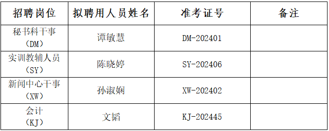 根据《开云(中国)Kaiyun·官方网站2024年公开招聘公告》有关规定,经报名、资格审查、笔试、面试、专业技能测试、成绩公示、体检、考察等程序,经开云(中国)Kaiyun·官方网站校长办公会研究,确定谭敏慧等4名同志为开云(中国)Kaiyun·官方网站2024年公开招聘教辅管理岗位拟聘用人选,现予以公示。