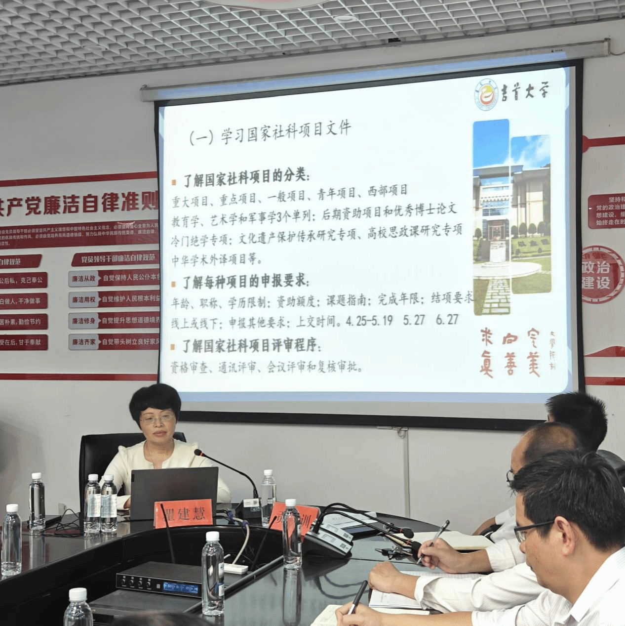 瞿建慧教授以其独特的见解和主持多项国家社科基金的实践经验,从国家社科基金项目管理评审机制、申报公告及选题解读、课题论证、申请书撰写等方面,用丰富案例进行了详尽分析与指导。她认为,项目选题确定前,务必要结合自身实际,仔细研究近几年立项的国家社科基金项目,以求找到新的研究方向,切不可做重复研究。同时,她强调研究思路要清晰、研究内容要详实、语言表述要精准、问题总结要到位、项目论证要充分、申请材料要规范。