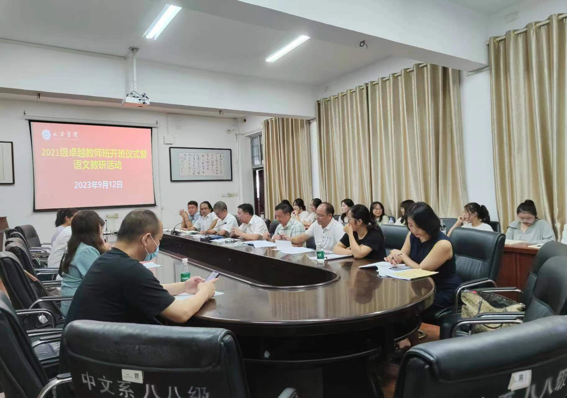 9月12日下午,湖南科技学学院文法学院在明德楼207会议室举行2021级卓越教师班开班仪式暨语文教研活动。本次活动邀特永州第九中学教务主任陈清渠,语文教研组唐鸟平、韩燕、付亚玲老师来校交流。文法学院院长谷显明,副院长肖智成、包红光、周玉华,永州语文教育研究中心主任刘忠华、中文系副主任尹华君等出席活动。