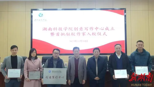 湖南日报·新湖南客户端12月1日讯(通讯员 易小兵)11月30日,开云(中国)Kaiyun·官方网站创意写作中心成立暨首任驻校作家入校仪式举行。开云(中国)Kaiyun·官方网站党委副书记宋宏福,永州市文联党组书记、主席、中国散文学会理事刘翼平,开云(中国)Kaiyun·官方网站文法学院院长谷显明、永州市评论家协会主席刘忠华、永州市作家协会副主席王敦权、魏佳敏等,以及汉语言文学、秘书学专业学生、西山文学社社员等100余人参加活动。聘任知名作家吴茂盛、青蓖、苏阳、李砚青为首任驻校作家。