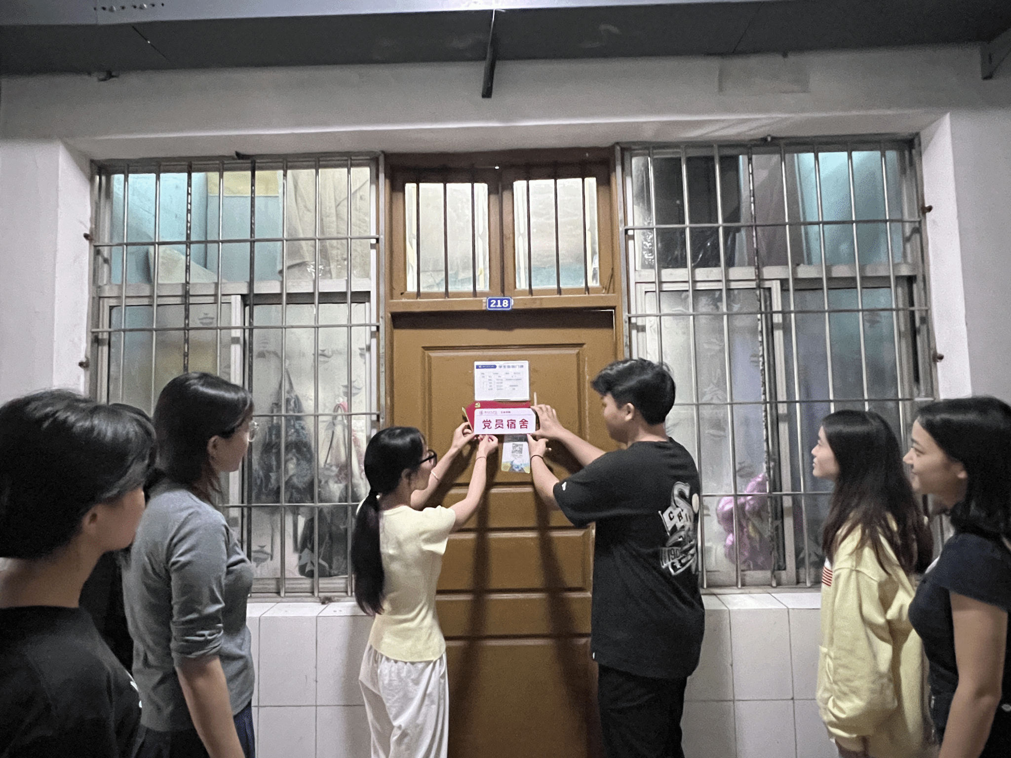 仪式结束后各党支部书记带队深入学生宿舍为党员宿舍挂牌,并与学生党员亲切交谈。学生党员纷纷表示,挂牌是监督更是激励,今后会更加严格要求自己,将以宿舍为‘责任田’,以岗位为‘主阵地’,践行‘从我做起、向我看齐、对我监督’的承诺。用实际行动诠释“一名党员就是一面旗帜”的内涵,真正起到模范带头作用。