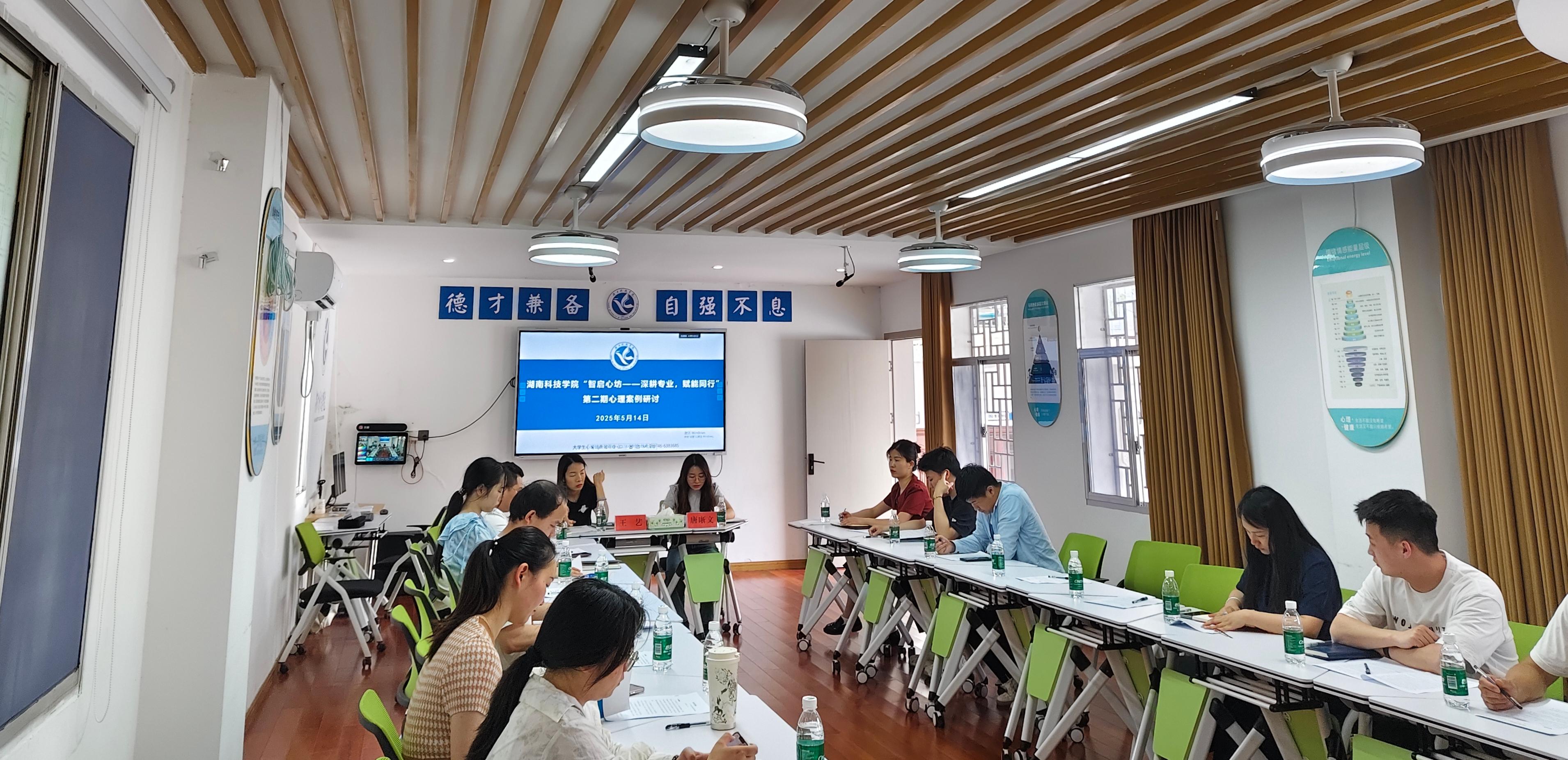 为深入贯彻落实心理健康教育工作的文件要求,提升辅导员队伍心理危机干预能力,5月14日下午,第二期“智启心坊——深耕专业,赋能同行”心理案例研讨会在大学生心理健康教育中心智慧教室顺利开展,本次活动由大学生心理健康教育中心主办、文法学院承办。大学生心理健康教育中心专职教师唐晰文主持研讨,文法学院学工办主任王艺主讲。心理中心专职教师、各学院辅导员及班主任等20余人参加本次研讨会。