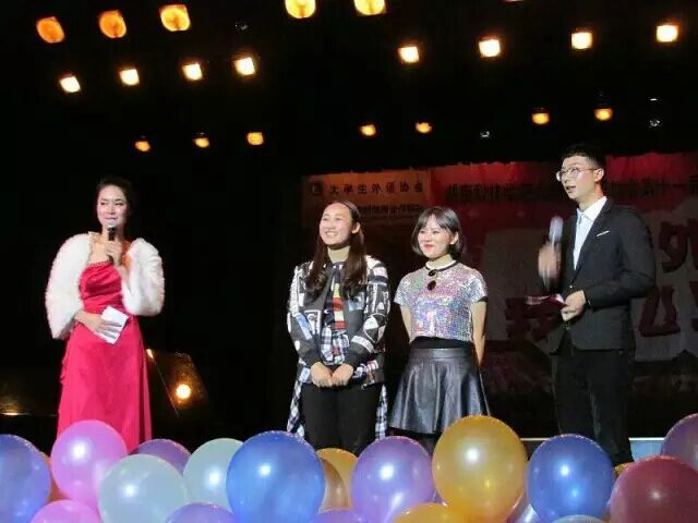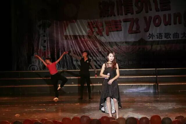 比赛中,选手们用一首首或优美婉转或热情奔放的外语歌曲以十进六制原则进行才智大比拼,现场比拼气氛可谓高涨。在新一轮成绩未出来时,接下来的抽奖环节稍稍缓解紧张的气氛。接下来就是第二环节的守擂赛了,这一场可谓是气氛火热,掌声如潮,因为此次环节将选出三人来进行冠亚季军的角逐。第二环节之后的由脉动舞团带来的舞蹈和抽奖环节更是将比赛推到了高潮。经过一番激烈的比拼和角逐终于迎来了我们的冠军争夺赛,三位选手用炉火纯青的技巧各展歌喉,蒋若兰以优先的成绩暂居冠军之位,之后大众评审团为剩下的两位选手进行投票,得票高者可以进下一轮的冠军争夺赛。最后胜出的两位选手使出最后杀手锏,究竟花落谁家,只待评委公平抉择了。与此同时也进行了最后一轮的抽奖环节。现在已然到了激动人心的时刻了,众望所归,被观众称为实力唱将的蒋若兰夺得本次大赛的冠军。随后进行了颁奖仪式,老师为获奖选手颁奖并合影留念。