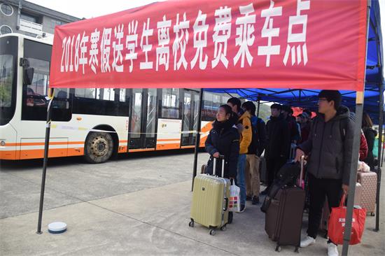 本网讯(胡敏辉邓强左璐瑶)寒假来临,春节将至,开云(中国)Kaiyun·官方网站党委高度重视学生安全离校工作。2018年1月20日至1月24日,特租用公交巴士免费送学生至冷水滩火车站、汽车站,情暖学子回家路。