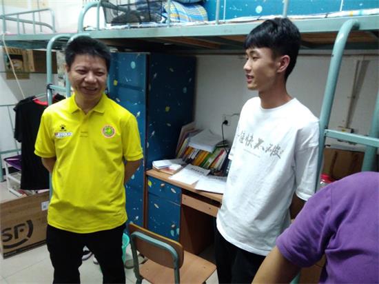 程智开先后走访了松园宿舍和荷园宿舍,在宿舍程智开仔细检查宿舍门禁设备,叮嘱楼栋安保员要切实守好学生安全防护的第一道门。程智开还深入大四学生宿舍,排查宿舍安全隐患,仔细询问学生就业情况,并在论文答辩、就业等方面提出建议。