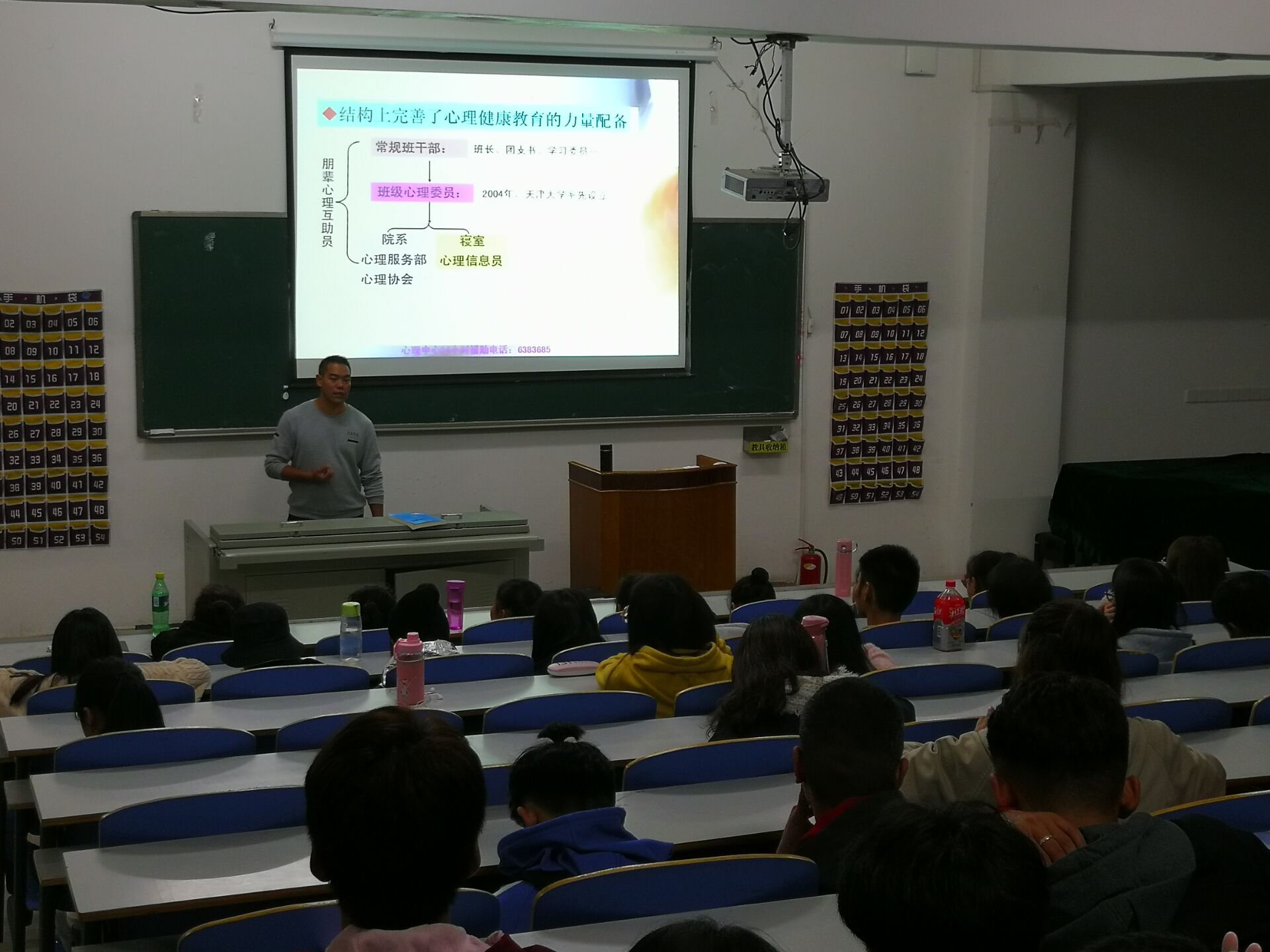 本网讯(通讯员吴潭袁慧明)10月15日晚,音乐与舞蹈学院在阶梯教室举行了2018级心理朋辈辅导员首场培训。该院党总支副书记兼副院长蒋磊出席,会议由学工办主任刘华剑主持,院系主要团学干部及2018级全体班干部参加了本次培训会。