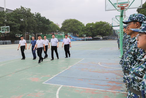 本网讯军姿彰显意志,汗水挥洒青春。学校2023级新生军训正如火如荼地进行,一抹抹橄榄绿为校园增添了一道亮丽的风景。9月21日下午,党委书记李钢,副校长吴小林一行深入军训场地检查指导军训工作,看望慰问2023级军训新生。